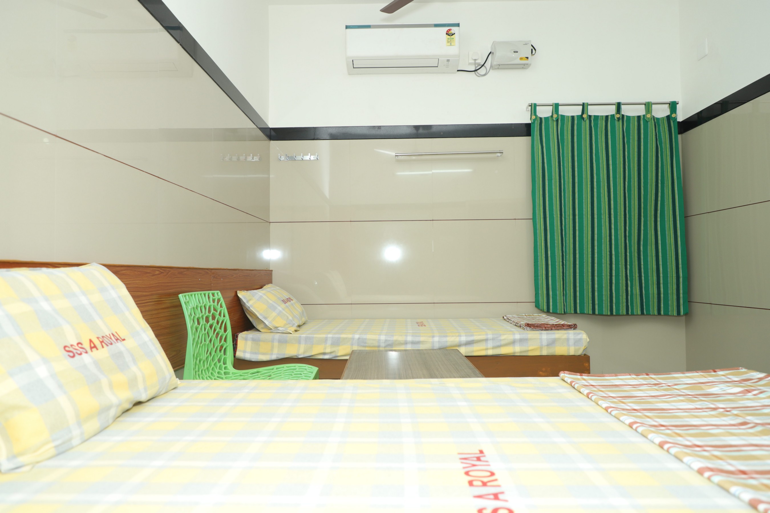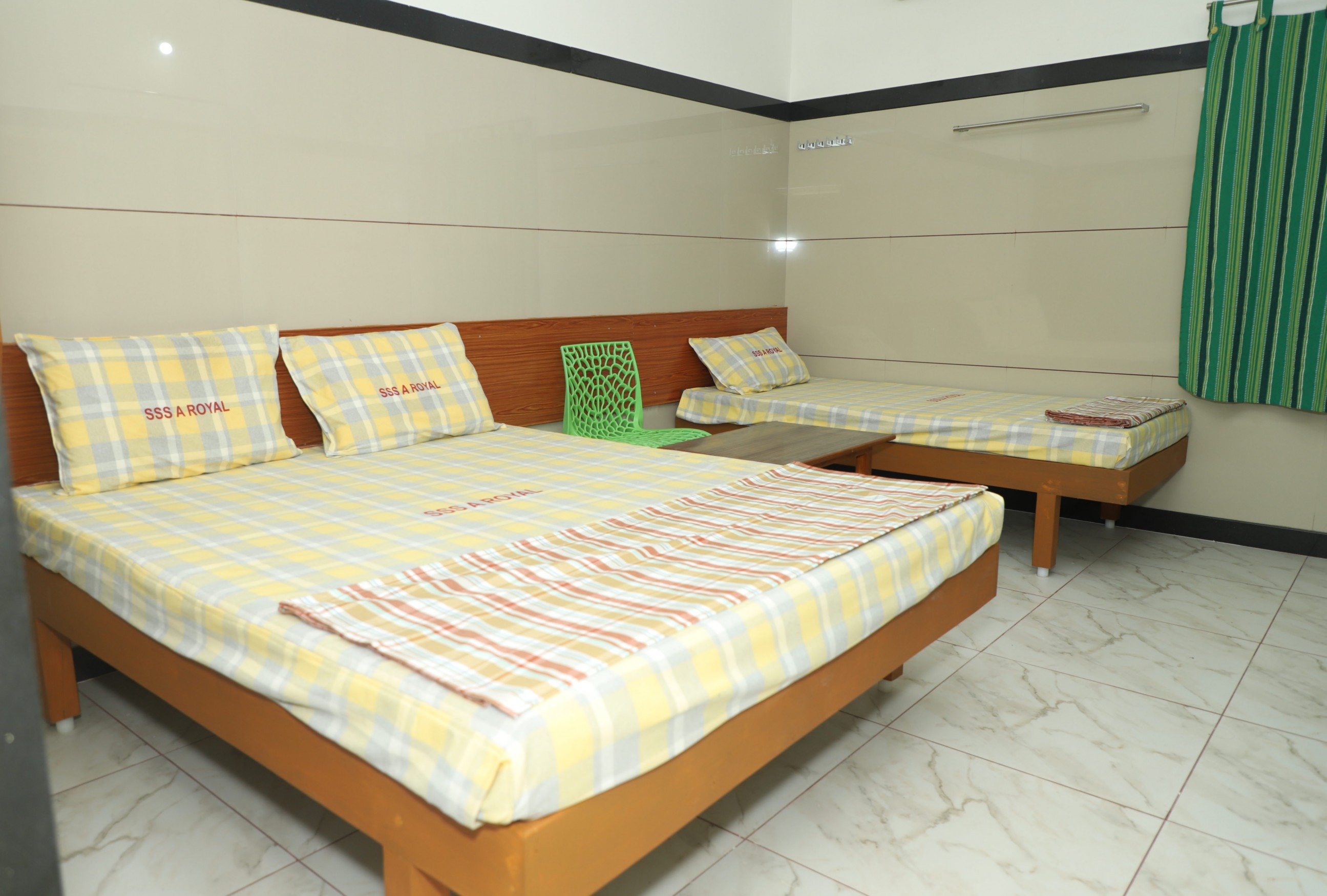 Embark on a serene journey of spiritual connection and discover a haven of tranquility with our cozy Two Cot room, perfectly tailored for two adults and a little traveler. Nestled near the sacred temple, our hotel is a blend of comfort and convenience, offering both AC and non-AC options to suit your preferences. Indulge in the warmth of our hot water baths after a day of divine exploration and enjoy an uninterrupted, peaceful rest assured by our reliable power backup. With ample parking and budget-friendly prices, we ensure your spiritual retreat is complemented with ease and affordability. Join us, and weave beautiful memories of devotion and comfort under one welcoming roof.